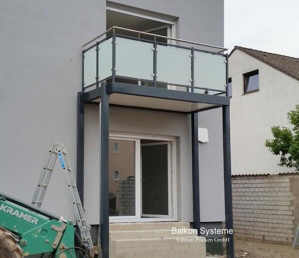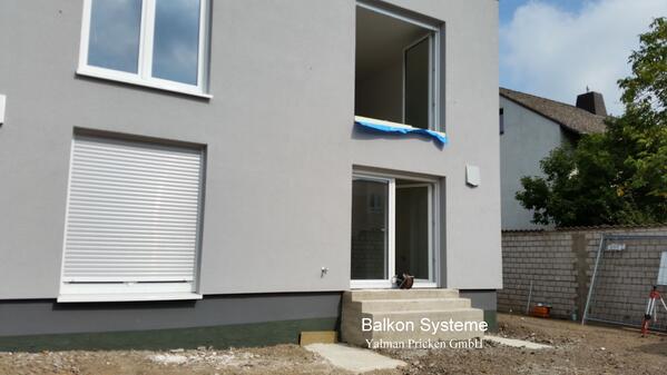 - Pulverbeschichtete Balkon-Anlage mit einem Sichtschutz aus Sicherheitsglas