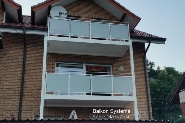 Pulverbeschichtete Balkon-Anlage über 2 Etagen RAL 9010