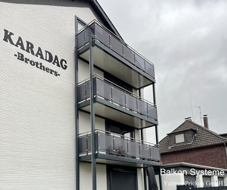 Pulverbeschichtete Balkon-Anlage RAL 7016, Geländer mit Rauchglas anthrazit